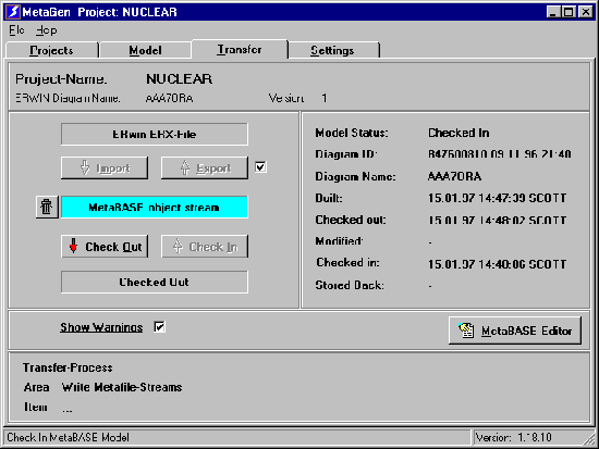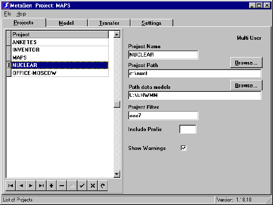 МетаBASE - ERwin для DelphiНаталия Елманова, Центр Информационных Технологий Проблемы использования метаданных в клиентских приложениях.Информационные системы, основанные на архитектуре клиент-сервер, приобрели заметную популярность в течение последних нескольких лет. В достаточном количестве имеются инструменты для графического проектирования серверных частей подобных информационных систем (так называемые средства). Однако до сих пор не сформулирована универсальная концепция использования в клиентских приложениях информации, содержащейся в созданной с помощью инструментов модели данных (так называемых метаданных). Нередко приходится в процессе разработки производить определение метаданных дважды: при создании серверной части информационной системы и при создании клиентских приложений, что потенциально является источником ошибок и несогласованности метаданных серверной и клиентских частей информационной системы. По той же причине поддержка и сопровождение проекта становятся весьма проблематичными при усложнении модели данных, а разработка интерфейсов пользователя, основанных на сложных структурах данных, предъявляет высокие требования к разработчику даже в случае использования таких совершенных инструментов, как Borland Delphi. Кроме того, часто доступ к модели данных желателен не только в процессе проектирования, но и в процессе выполнения приложения, особенно когда информационная система подвергается модернизации, так как при этом. процесс сопровождения информационной системы требует меньших временных и финансовых затрат. Эта проблема может быть решена путем создания утилит, способных осуществлять двухсторонний обмен метаданными между словарем данных средства разработки и ER-диаграммой средства, и компонентов, способных использовать метаданные не только во время проектирования, но и во время выполнения. Попытка сделать первое была реализована в эксперте из комплекта поставки Delphi 2.01, осуществляющем односторонний перенос расширенных атрибутов из ER-диаграмм популярных средств в словарь данных Delphi, однако это было лишь частичным решением проблемы, так как при этом невозможен перенос метаданных обратно из словаря данных в ER-диаграмму, да и с ERwin этот эксперт работает некорректно. Что касается второго - создания чувствительных к метаданным компонентов, эта проблема решается с помощью предлагаемого вашему вниманию инструмента MetaBASE (ERwin for Delphi), поставляемого в комплекте с известным средством ERwin компании Logic Works. MetaBASE как средство решения проблем доступа к метаданнымMetaBASE представляет собой набор утилит и визуальных компонент для Delphi 1.0,2.0,2.01,3.0, выпущенный компанией gs-soft и поставляемый в комплекте с ERwin (Logic Works). Назначение этого набора - предоставить объектно-ориентированный доступ к модели данных ERwin в процессе разработки и выполнения клиентских приложений, создаваемых с помощью Delphi. Осуществляется этот доступ за счет создания специализированного словаря данных (в терминологии авторов продукта - Metamodel), отличного от словаря данных Delphi 2.0, который, c одной стороны, поддерживает двунаправленный обмен метаданными с ER-диаграммой формата .erx с помощью специальной утилиты, а, с другой стороны, доступен для использования набором поставляемых в комплекте визуальных компонент для доступа к данным, которые, в свою оч