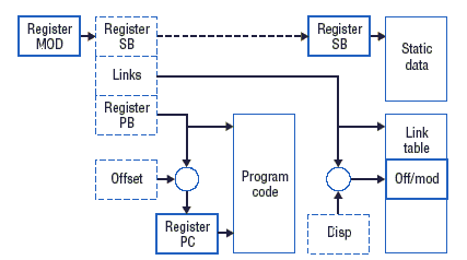 Числа с дробной частью можно представлять в формах с фиксированной и плавающей точкой. Сегодня в аппаратуре обычно поддерживается арифметика с плавающей точкой, т.е. число x представляется двумя целыми числами - порядком Некоторое время разработчики спорили о том, какое следует выбрать основание Однако это оказалось плохой идеей, поскольку усугубляло эффекты округления. В результате для IBM 360 можно было найти такие значения Адресация данныхВ ранних компьютерах инструкции состояли просто из кода операции и абсолютного адреса параметра или его литерального значения. Это делало неизбежной самомодификацию программ. Например, если требовалось сложить в цикле числа, хранимые в последовательных ячейках памяти, программа должна была на каждом шаге модифицировать адрес в инструкции сложения, прибавляя к нему единицу.Хотя разработчики объявляли возможность модификации программ одним из важных следствий глубокой идеи Джона фон Неймана (John von Neumann) о хранении программы и данных в одной и той же памяти, этот подход оказался опасным и неограниченным источником ошибок. Программный код должен оставаться неприкосновенным; в противном случае поиск ошибок становится ночным кошмаром. Разработчики быстро поняли, что самомодификация программ является плохой идеей. Чтобы избежать этих ошибок, они ввели новый режим адресации, в котором адрес трактовался как часть изменяемых данных, а не как часть программной инструкции, которую было бы лучше оставить неприкосновенной. Решение вовлекало косвенную адресацию и модификацию только непосредственно адресуемого адреса, слова данных. Хотя этот подход устранял опасность самомодификации программ и использовался в большинстве компьютеров до середины 1970-х, в ретроспективе его следует рассматривать как сомнительную идею. В конце концов, для обеспечения каждого доступа к данным требовалось произвести два обращения к памяти, что вызывало замедление вычислений. "Остроумная" идея многоуровневой косвенности еще более ухудшила ситуацию. Данные, к которым производился доступ, должны были содержать бит, показывающий, содержит ли данное слово желаемые данные или же еще один - возможно, снова косвенный - адрес. При задании цикла косвенных адресов такие машины могли войти в состояние полного бездействия. Решение состояло во введении индексных регистров. Значение, хранимое в индексном регистре, могло прибавляться к константному адресу, который содержался в инструкции. Для этого требовалось добавить в состав аппаратуры несколько индексов и внедрить сложитель в сумматор арифметического устройства. В IBM 360 все регистры были объединены в единую группу регистров, что теперь является привычным. Своеобразный механизм использовался в компьюторах CDC 6000. Команды непосредственно обращались только к регистрам, которые делились на три группы: 60-битные регистры (X), 18-битные регистры (A) и 18-битные регистры (B). Каждое обращение к A-регистру, значение которого модифицировалось путем прибавления значения B-регистра, неявно вызывало доступ к памяти. Странным было то, что обращения к регистрам A0-A5 приводили к чтению из адресуемой ячейки памяти в регистры X0-X5 соответственно, а обращения к A6 или A7 приводили к сохранению X6 или X7 соответственно. Хотя этот механизим не вызывал каких-либо серьезных проблем, мы можем ретроспекти