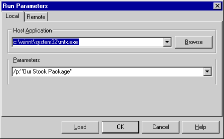 5. Отладка серверных объектов MTSОтладка серверных объектов MTS может быть осуществлена при наличии клиента, вызывающего отлаживаемые методы. Для отладки серверного объекта следует открыть его в среде разработки, установить необходимые точки прерывания в его исходном тексте и выбрать из меню Delphi опцию Run/Parameters. Затем в строке Host application нужно указать местоположение исполняемого файла mtx.exe, например: c:\winnt\system32\mtx.exe (на Вашем компьютере это местоположение может быть другим). В строке Parameters следует указать имя "пакета", в котором установлен данный объект: /p:"Our Stock Package" Обратите внимание: между двоеточием и кавычками не должно быть пробела (рис. 16):