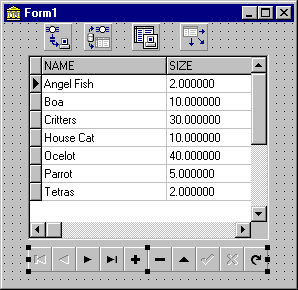 Рис. 4. Главная форма клиентского приложения. Теперь можно сохранить проект, скомпилировать и запустить его. 2.4. Передача параметров на серверПредположим, нам нужно выполнить параметризованный запрос: select_animals: SELECT NAME,SIZE,WEIGHT,AREA FROM ANIMALS WHERE NAME=$NAME[CHARACTER]; Внесем соответствующие изменения в SQL-скрипт и перезапустим сервер. Если теперь в клиентском приложении раскрыть список подсвойств SelectRPC компонента TEnteraProvider и выбрать подсвойство Params, можно просмотреть список всех параметров запроса и обнаружить, что параметр NAME изменил значение своего свойства ParamType на ptInput.