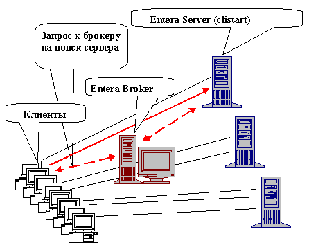 Рис. 8. Использование Entera Broker В заключение отметим, что создание клиентских приложений может быть осуществлено не только с помощью Delphi/C++Builder Enterprise, но и с помощью многих других средств разработки, в том числе 16-разрядных (например, SQL Windows, Visual Basic, Delphi 1.0 или Delphi 2.0 Desktop). В этом случае следует использовать для соответствующего языка программирования генератор stub-кода, содержащего вызовы удаленных процедур, связанные с выполнением SQL-запросов (он входит в комплект поставки Entera и называется Object Interface Generator), и затем встраивать сгенерированный код в клиентское приложение, то есть использовать стандартные методы создания клиентских приложений, рассмотренные в следующем разделе. Компоненты TEnteraConnection и TEnetraProvider фактически просто реализуют функциональность, которая в ином случае содержалась бы в сгенерированном stub-коде. Назад | Содержание | Вперед