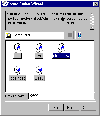 Рис. 17. Создание конфигурации Entera-серверов Далее появится несколько диалоговых окон, в которых следует ввести данные в интерфейсные элементы. В частности, следует зарегистрировать используемые в данной конфигурации компьютеры, указать имена компьютеров, на которых функционируют серверы и брокеры, каталоги, в которых находятся исполняемые файлы серверов функциональности, указать номера TCP-портов для обращения к брокерам, и в результате будут автоматически сгенерированы env-файлы (ранее мы создавали их вручную). Рис. 18. Регистрация управляемых компьютеров В результате ответов на вопросы будет создана конфигурация из двух серверов функциональности с балансом загрузки.