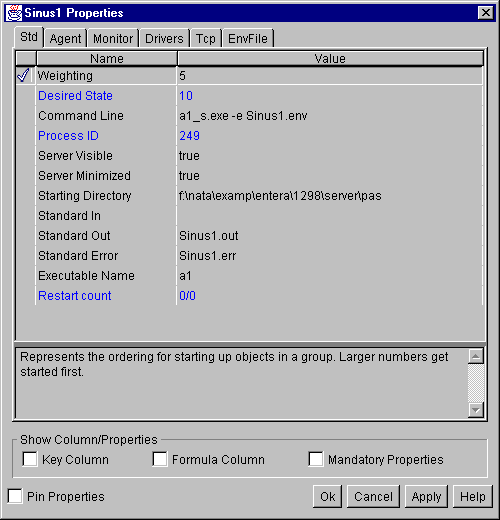 Рис. 20. Установка значений свойств управляемого объекта Выбрав закладку Dependencies, можно установить связи между объектами (например, указать, какой брокер Entera обслуживает данный набор серверов).