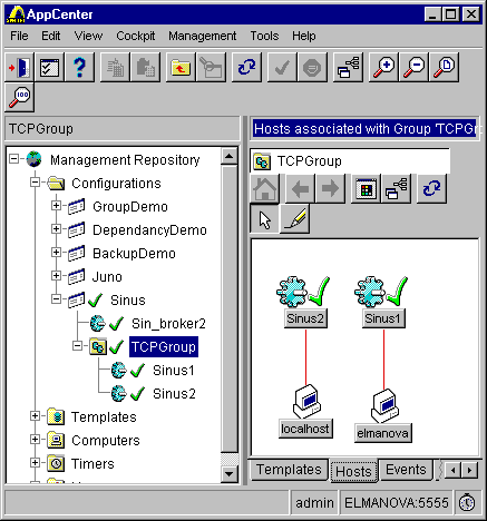Рис. 21. Установка связей между объектами Выбрав закладку Hosts, можно просмотреть или переопределить связи между компьютерами и серверами.
