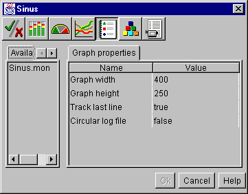 Рис. 27. Cockpit mode - режим отображения параметров функционирования наблюдаемых объектов Cockpit (в переводе это слово означает кабину самолета с приборными панелями) представляет собой набор графических объектов для отображения свойств наблюдаемых объектов. Создается он в режиме редактирования с помощью опции меню Cockpit/New. Методом drag-and-drop на появившуюся пустую форму можно перетаскивать пиктограммы наблюдаемых объектов. Далее из появившейся диалоговой панели можно выбрать тип графика и отображаемое свойство объекта, а также характеристики, специфические для данного способа отображения (высоту графика, цвет, масштаб и др.).