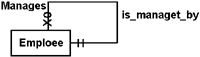 Пример унарного отношения : "Сотрудник управляет, по меньшей мере, нисколькими и, по большей мере, сколько угодно многими сотрудниками, и, в то же время, сотрудник управляем, по меньшей мере, одним и, по большей мере, одним сотрудником".