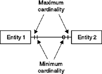 Кардинальностью отношения называется количество встречаемых проявлений сущности, которое может или должно соответствовать каждому проявлению другой сущности. Каждое отношение имеет минимальную и максимальную кардинальность в обоих направлениях. Минимальная кардинальность определяет правила существования для сущности в отношении: