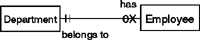 Например, представим себе, что мы хотим смоделировать следующее предложение: "Отдел не имеет сотрудников или имеет много сотрудников, при этом каждый сотрудник обязан работать только в одном отделе". Отношение будет выглядеть следующим образом, где слова "принадлежит" (belongs to) и "имеет" (has) являются глаголами.