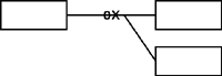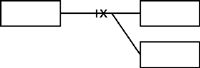 Максимальная кардинальность отношения представляется на диаграмме ближе, а минимальная - дальше от фигуры сущности. Кроме того, в DataAtlas Modeler около значков сущности отображаются глаголы действий отношения.
