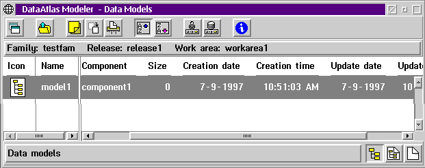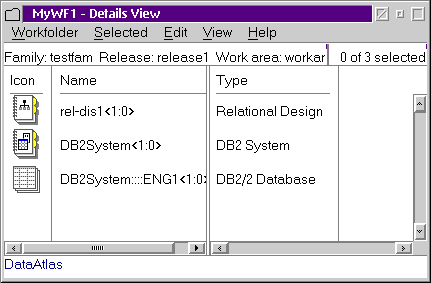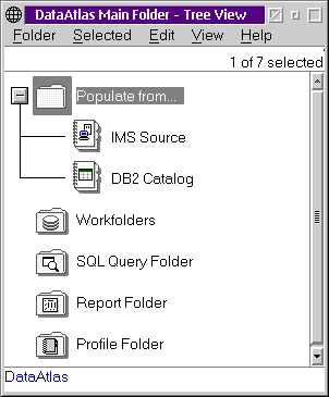 DataAtlas Designer поддерживает оба способа разработки. DataAtlas Dictionary дает разработчику базы данных методы для управления, разделения ресурсов и стандартизации определения данных, связанных с реляционными базами данных, иерархическими базами данных IBM IMS и приложений на языках разработки высокого уровня. DataAtlas Dictionary использует IBM VisualAge TeamConnection для хранения, обработки, и разделения объектов баз данных с модулями DataAtlas Designer и Modeler и другими средствами разработки (например, IBM VisualAge Generator). После старта модуля DataAtlas Dictionary & Designer (рис.10) администратор системы управления базами данных может экспортировать данные из уже существующих реляционных и иерархических баз данных, либо создать свою собственную папку для работы с информацией, выбранной из общего репозитария TeamConnection или определенной самим администратором.