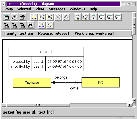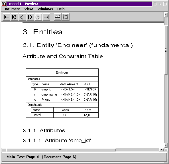 После определения сущностей можно при помощи манипулятора типа "мышь" связать их, определив отношения в концептуальной модели данных, назначив глаголы (verbs) отношений и аттрибуты отношений (рис.5). Далее для каждой сущности (рис.6) строятся аттрибуты, тип данных которых предварительно определяются из общего репозитория IBM TeamConnection (рис.7). После создания модели и её проверки на непротиворечивость (верификации) можно создать и распечатать документацию (рис.8). Заметим, что в шаблонах документов и комментариях к каждому объекту модели могут использоваться русские буквы, что значительно повышает потребительские свойства IBM VisualAge DataAtlas на российском рынке.