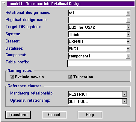В завершающей стадии работы с ER-моделью её можно перевести в реляционную модель для испоьзования с конкретной базой данных (рис.9) и далее работать с DataAtlas Dictionary and Designer.