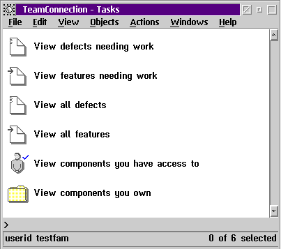 Преимущества от использования TeamConnection для ведения корпоративного проекта можно сравнить разве что с тем революционным нововведением, которым для мира аппаратного обеспечения стала концепция общей шины. Работа с TeamConnection начинается с запуска сервера объектной пазы данных ObjectStore, которая реализована для платформ IBM OS/2 Warp и AIX, MS Windows NT и Hewlett Packard HP/UX. Проекты находятся в объектных базах данных, называемых семействами. Каждое такое семейство объектов автономно и активируется при помощи соответствующего процесса-демона с указание сервиса процесса в файле настроек TCP/IP /etc/services. Семейство представляет собой иерархию объектов, которой может управлять администратор данного семейства. Элементы такой иерархии называются компонентами. Компоненты могут иметь насколько версий-реализаций, которые также может определять пользователь данного объекта. "Мгновенный снимок" данного объекта, с соответствующими компонентами и их версиями называется рабочей областью, с помощью которой и ведется работа с самим текущим проектом. Сами компоненты представляют собой высокий уровень абстракции и могут реально соответствовать любому элементу, определенному программистом: типам данных, реляционным моделям, транслированным классам графического интерфейса, программному коду и так далее. К серверу IBM VisualAge TeamConnection может подключаться несколько гетерогенных клиентов, при этом каждый клиент также может быть и сервером TeamConnection, содержащим несколько семейств. Администрация проекта ведется средствами протокола TCP/IP и может быть произведена как средствами командной строки (или языка C-shell в UNIX и REXX в OS/2), так и при помощи специальной графической утилиты. Примеры грамотного и удобного администрирования хорошо и подробно описаны в прилагаемых к пакету руководствах как для начинающих, так и для опытных пользователей. Каждый пользователь может создавать свои собственные объекты и управлять ими при помощи графического интерфейса (рис.2) или командной строки и языка управления заданиями.