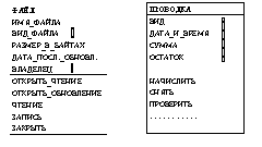 2.1.3. Операции и методыОперация - это функция (или преобразование), которую можно применять к объектам данного класса. Примеры операций: проверить, снять, поместить (для объектов класса счет - рисунок 2.1), открыть_на_чтение, читать, закрыть (для объектов класса файл - рисунок 2.2) и т.п.