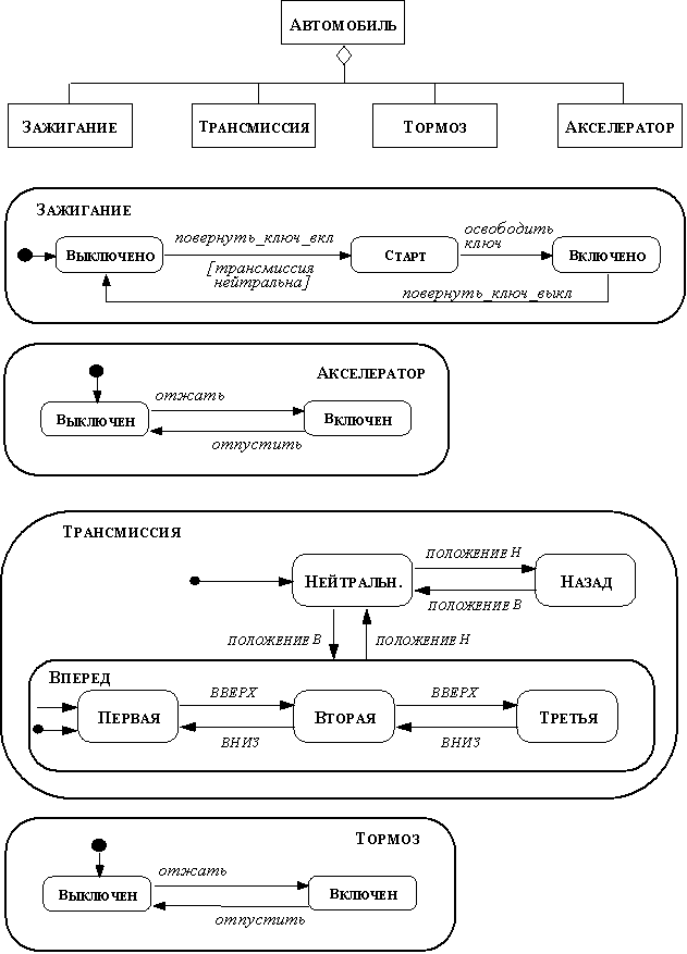 Рис. 2.52. Синхронизация в подсистеме Из рассмотренного примера видно, что в различных состояниях может параллельно работать разное число процессов (активностей). Назад | Содержание | Вперед |