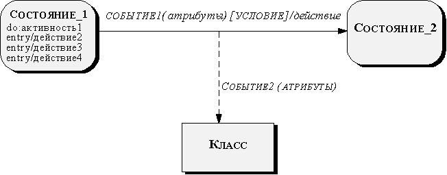 Рис. 2.50. Диаграмма состояний составного объекта (подсистемы) Если синхронизирующее событие вырабатывается вне синхронизируемого объекта, оно может быть передано ему из другого объекта; на диаграмме это обозначается как показано на рисунке 2.51.