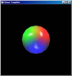 Здесь надо сделать пояснения для вызовов функции glLight с параметрами GL_DIFFUSE и GL_SPECULAR. GL_DIFFUSE - определяет цвет света источника. В данном примере у нас три лампы - с красным источником света, с зеленым и с синим. GL_SPECULAR определяет отраженный свет, см. предыдущий пункт. Теперь измените функцию display: