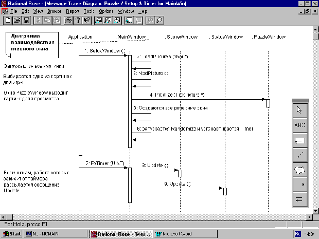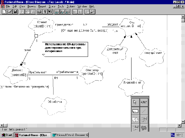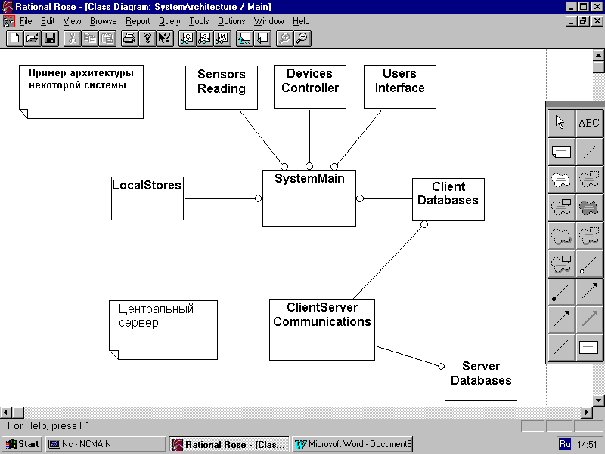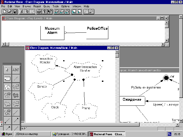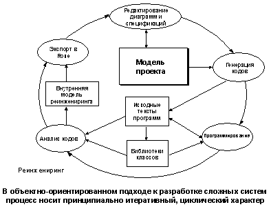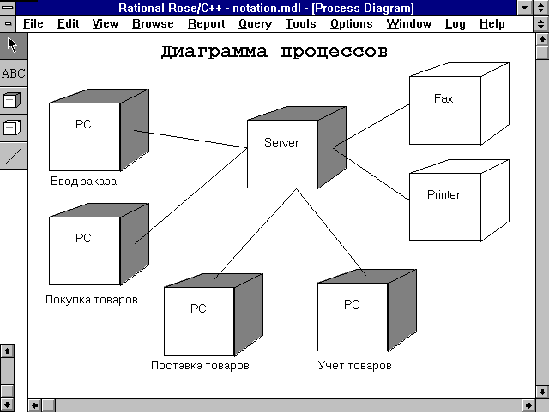 Rational Rose - средство объектно-ориентированного моделирования, поддерживающие методы Буча и ОMT. Работа в Rational Rose основывается на построении различного рода диаграмм, описывающих проект. Графический диалог ведется с использованием систем обозначений, подробно изложенных в известных работах: "Объектно-ориентированное проектирование с примерами применения" Г.Буча, и "Объектно-ориентированное моделирование и проектирование" Д.Рамбо. Основные свойства Rational Rose