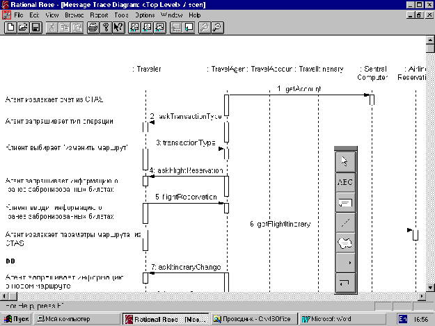 Система включает средства автоматического взаимного преобразования диаграмм сценариев. Диаграммы сценариев сообщенийДиаграммы сценариев объектов