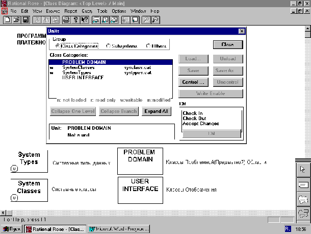 Степень визуализации проанализированной информации при передачи ее в Rational Rose/C++ настраивается. Это позволяет производить анализ с различным уровнем детализации. Групповая работа в Rational Rose/C++