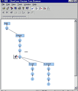 Для выполнения всех операций, связанных с контролем версий применяется механизм настраиваемых видов (VIEW). Технологически вид является только средством фильтрации, находящейся в VOB, преобразуя все это множество информации в вид, понятный не только машине, но и человеку. Такой подход позволяет разработчику или техническому писателю видеть не все файлы, составляющие проект, а только те которые необходимы для решения конкретной задачи. Тем самым программа позволяет достаточно легко абстрагироваться от текущего состояния, переводя все внимание на определенную часть проекта. Только через систему видов возможны все операции, присущие не только ClearCase, но и любой другой программе версионного контроля, это такие операции как: постановка файлов под контроль, при котором для каждого элемента создается дерево версий, операции "Check-in" и "Check-out", позволяющие производить редактирование отдельного файла, создавая увесистое дерево версий, на котором отражена полная история развития отдельного элемента. Виды в программе представлены двумя типами: "Dynamic" и "Snapshot", имеющими свои достоинства и недостатки, но при совместном использовании, способные открыть новые возможности в контроле над файлами. Специфика вида "Dynamic" заключается в том, что данный вид полностью использует все возможности операционных систем NT и UNIX, создавая виртуальную файловую систему, на которой размещаются все подконтрольные данные. Сама файловая система размещается также на виртуальном диске, физически размещаясь на сервере. Данный способ позволяет вести контроль над файлами в реальном масштабе времени, но пользователь с локальной станции имеет дело не с физическими объектами. "Snapshot" - оправдывает свое название - фотография - делая снимок текущего состояния проекта на локальной машине. Разработчик получает на своем диске точную копию либо всего проекта, либо только необходимой части: файла, группы файлов: Важным моментом при такой работе является синхронизация локальных данных с общим проектам, которая в данном случае выполняется не автоматически, а по команде пользователя, что делает возможным удаленную работу над проектом, позволяя любому разработчику взять материал "на дом", после чего вернуть новые версии файлов в проект. "Snapshot" - не зависит от типа операционной системы и от производительности интранет, поскольку не нагружает так локальную сеть, как "Dynamic View". Имея мощный набор инструментов, настраивающих вид можно добиться поразительных эффектов, таких, которые недоступны для других программ версионного контроля. Неоценимой возможностью можно считать возможность параллельной разработки, когда программа допускает правку одного и того же файла несколькими разработчиками, создавая ответвление на дереве версий - одно или несколько - в зависимости от числа использующих один и тот же файл. Как говорилось ранее: для каждого файла создается дерево версий. Дерево состоит из основной ветви - корня, и остальных "листьев" - версионных ответвлений - бренчей, здесь следует отметить две разновидности ответвлений: простое ответвление (Branch) - создаваемое для отдельного файла и в любых количествах, и главное ответвление (Private Branch) - ответвление для всего проекта, когда создается новая ветвь для всех файлов, составляющих проект, но ветвь может быть только одной. Последняя возможнос