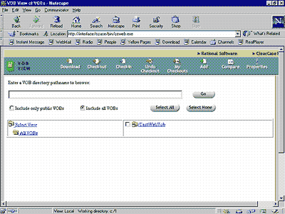 Рис. 8. Так выглядит окно работы с проектами. В верхней части браузера - наименования доступных в данный момент операций. Некоторые особенности ClearCaseМногое из вышеоописанного, возможно, уже знакомо читателям, применявшим сходные средства контроля и управления. Хочется еще раз отметить особенность использования ClearCase в Windows NT: этот продукт обладает мощным графическим пользовательским интерфейсом и мощным интерфейсом командной строки. Соответственно каждая операция может быть выполнена двумя различными способами. Командная строка позволяет подстраивать продукт под конкретные нужды конкретной компании. Без помощи командной строки достаточно сложно произвести некоторые тонкие настройки, имеющие отношение к работе с данными. Каждая операция, производимая над данными, предварительно описывается как значимая и неделимая. Набор таких описаний и правил носит название Configuration Management и является частью методологии RUP. Configuration Management полностью регламентирует, что, как и кем должно делаться в проекте и как использовать для этих целей ClearCase. Согласитесь, мало иметь инструмент, нужно уметь им пользоваться. Попытаемся рассмотреть (схематично), каким образом ClearCase позволяет контролировать проект. Для этого обратимся к настройке видов и осуществим слияние версий. Особенности создания видовИтак, если вспомнить базовые возможности ClearCase в области хранения информации, то получается, что мы должны создать репозитарий (VOB), создать вид (один или несколько), затем любым известным способом копировать/сохранять файлы и директории на диск, созданный ClearCase, и установить за ними контроль (рис. 9).