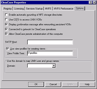 Рис. 15. Обратите внимание на выделенные пункты. Они появятся только при указании пути к правильной директории Profiles, в противном случае пункты могут либо отсутствовать, либо не активироваться. При корректной установке можно смело нажимать на кнопку View Profile и создавать новый видовой профиль. Именовать его можно либо своим именем, либо по версии проекта (в зависимости от конкретной ситуации). Обязательно следует указать имя VOB, для которого строится вид, а затем наименование ответвления. В результате операции будет создан новый вид (новый диск), в котором отсутствуют файлы проекта. Отсутствие это временное, поскольку создание вида по профилю подразумевает слияние одного или нескольких файлов из предыдущего вида в текущий. Иными словами, для параллельной разработки можно брать не весь проект, а только указанные его части (файлы, директории). Разумеется, все изменения будут отражены на дереве версий. Здесь необходимо акцентировать внимание на том, что методом профилей можно организовать не только параллельную разработку, но и разбивку проекта на несколько частей. Например, одна часть проекта - DEVELOPMENT - доступна всем и отображает все версии всех файлов, но с текущей версией только на ветви MAIN, а вторая часть - RELEASE - содержит только те файлы, которые подлежат компиляции. И наконец, DEBUG - часть, содержащая отладочные версии файлов. Все эти ветви можно сделать при помощи профилей либо с помощью ручной правки правил (рис. 16).