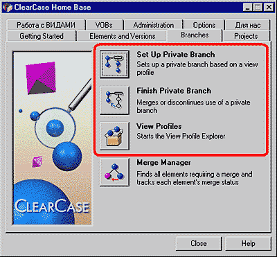 Рис. 14. Данная вкладка представляет собой часть окна администрирования. После настройки путей становится полностью доступной вкладка Branches - ClearCase HomeBase (рис. 15).