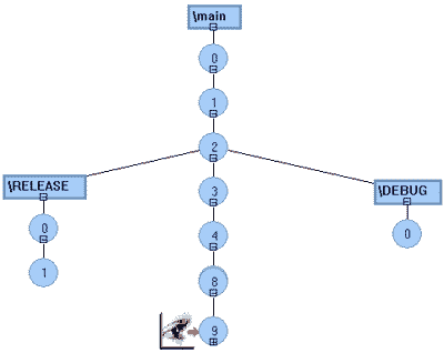Рис 1. Главное окно ClearCase. Одно из неоспоримых достоинств ClearCase - гибкость в настройке. Обратите внимание на русифицированные пункты меню - они созданы исключительно при помощи стандартных возможностей продукта. С помощью уникального инвариантного подхода в этом продукте реализовано полное управление исходным текстом, включая контроль над версиями, управление рабочим пространством, конфигурацией среды и разрабатываемого ПО. Посредством ClearCase команда разработчиков совместно с руководителями подразделений и техническими писателями может сократить время поиска и анализа информации. Этот продукт позволяет убедиться в точности окончательных версий продукта, дорабатывать и поддерживать ранее реализованные продукты, организовывать эффективный процесс разработки - и все это без изменения среды, инструментальных средств и подхода к работе. Он обеспечивает управление версиями исходных текстов и библиотек на протяжении всего жизненного цикла проекта, позволяя разработчику вернуться к любой версии редактируемого файла и откорректировать его заново, создав новую версию. Не секрет, что для многих компаний, выпускающих продукты для разных платформ, поддержание необходимого количества файлов для каждой платформы представляет серьезную проблему. Она усугубляется еще и необходимостью поддержки нескольких версий одного и того же продукта. В таких условиях любой существующий подход ведет к большим трудозатратам, существенно снижая производительность труда всего коллектива, поскольку большую часть времени в этом случае "съедают" различные согласования, отчеты, поиски нужных версий. Единственный правильный выход из сложившейся ситуации - это внедрение средства версионного и конфигурационного управления, способного разрешить данную проблему. Имея в своем распоряжении ClearCase, каждый участник проекта получает доступ как ко всем файлам проекта, так и к определенной его части. Более того, при помощи специальных настроек один и тот же участник может получить доступ к конкретной версии файла из нужного проекта. Таким образом, при использовании ClearCase становится возможным редактирование абсолютно любых версий файлов, входящих в состав того или иного проекта. Для достижения подобного эффекта ClearCase использует мощную систему настраиваемых фильтров (в системе они называются ВИДАМИ - VIEWs), скрывающих ненужную информацию. Идеология программы достаточно проста: во-первых, любые изменения остаются в базе данных, во-вторых, в любой момент можно перейти к любой версии, если текущая содержит много ошибок (рис. 2).
