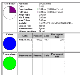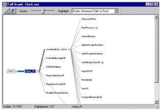Рисунок 5 Прервать процесс возможно в любой момент, закрыв тестируемое приложение (обратите внимание на рисунок 4. В конце диаграммы отображается черный квадрат, говорящий о том, что приложение завершилось). Здесь завершается механический этап сбора статистики и начинается творческий анализ. Способов, предоставляемых Quantify для анализа, более чем достаточно: можно посмотреть и дерево вызовов (Call Graph), и список функций с точными замерами (Function List), а если Вы разрабатываете свои приложения в среде Visual Studio, то Quantify позволит вызывать исходные тексты тестируемых функций (в этом случае эффективность разработки повышается за счет интеграции Quantify с Visual Studio).