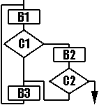 Как вам этот вариант? Мне кажется он тоже имеет право на жизнь, хотя лично мне вариант с четырьмя состояниями нравится больше. Как-то он нагляднее показывает что куда переходит и при каких условиях. А вам? Предвижу возражения такого толка, что при подобном подходе программы будут иметь повышенную склонность к зацикливанию. И да и нет. Циклы вообще склонны к зацикливанию :-) особенно если написать что-нибудь вроде repeat until false;. Так на то и голова дана, чтобы карась не дремал! А если серьезно, то устойчивость работы преобразованных таким образом программ прямо и недвусмысленно показывает, насколько удачно вы проработали исходную блок-схему и насколько аккуратно ее преобразовали. Поскольку на то оно и инвариантное преобразование, чтобы ничего не менять в смысле и логике программы, а затрагивать лишь ее внешнее представление.