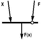 Аргумент и функция могут быть результатами предшествующих вычислений. Оператор запускается по готовности данных. Получение результата задается разметкой выходной дуги. При текстовом описании оператор интерпретации имеет две формы: постфиксную, обозначаемую знаком «:», и префиксную, при которой функция отделяется от аргумента знаком «^». Наличие двух способов записи позволяет в дальнейшем комбинировать их для получения более наглядного текста программы. Выражение F(X) оператор интерпретации задает как X:F или F^X.
