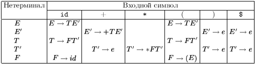4.4.5 Восстановление после синтаксических ошибокОдним из простейших методов восстановления после ошибки при LR(1)-анализе является следующий. При синтаксической ошибке просматриваем магазин от верхушки, пока не найдем состояние s с переходом на выделенный нетерминал A. Затем сканируются входные символы, пока не будет найден такой, который допустим после A. В этом случае на верхушку магазина помещается состояние Goto[s, A] и разбор продолжается. Для нетерминала A может иметься несколько таких вариантов. Обычно A - это нетерминал, представляющий одну из основных конструкций языка, например оператор. При более детальной проработке реакции на ошибки можно в каждой пустой клетке анализатора поставить обращение к своей подпрограмме. Такая подпрограмма может вставлять или удалять входные символы или символы магазина, менять порядок входных символов.