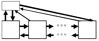 Рис. 1.1. Над списком, построенном в такой манере, можно выполнять операции поиска элемента, удаления элемента и занесение нового элемента в начало, конец или середину списка. Понятно, что все эти операции будут выполняться путем манипуляций над содержимым поля next существующих элементов списка. Для оптимизации операций над списком иногда создают вспомогательную переменную-структуру (заголовок списка), состоящую из двух полей - указателей на первый и последний элементы списка (рисунок 1.2). Для этих же целей создают двунаправленные списки, элементы которых, помимо поля next, включают поле previous, содержащее указатель на предыдущий элемент списка (рисунок 1.3) и, возможно, ссылки на заголовок списка (рисунок 1.4).