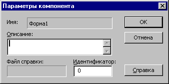 Позволяет добавить справочные сведения или комментарии для процедуры, описанной в проекте. Параметры окна диалога Имя компонента Отображает имя элемента, выделенного в списке Классы или Компоненты. Описание Позволяет задать строку, отображаемую в панели описания в окне диалога Просмотр объектов. Файл контекстной справки Отображает связанный с выбранным элементом файл справки. Это значение задается в ячейке Файл контекстной справки на вкладке Общие окна диалога Свойства проекта. Идентификатор справки Присваивает уникальное числовое значение идентификатору контекста. Это значение используется для поиска соответствующего раздела в файле справки из ячейки Файл контекстной справки при нажатии клавиши F1 или кнопки