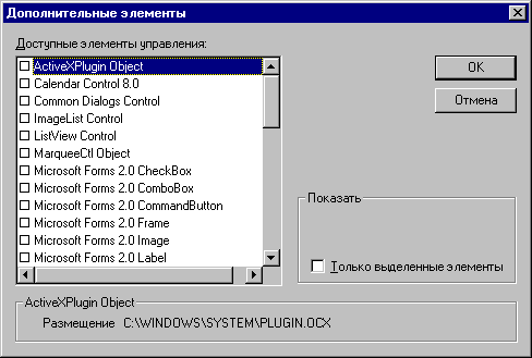 Вставляет новую процедуру Sub, процедуру Function или процедуру Property. Тут же возможна установка общей или личной области определения, а также превращение всех локальных переменных процедуры в статические. Параметры окна диалога Имя Имя новой процедуры. Тип Задает тип создаваемой процедуры. Подпрограмма (Sub) - Создает новую процедуру Sub. Функция (Function) - Создает новую процедуру Function. Свойство (Property) - Создает пару процедур свойства Let и Get. Область определения Устанавливает общую или личную область определения процедуры. Все локальные переменные считать статическими Добавляет в описание процедуры ключевое слово Static. OK Вставляет шаблон процедуры в окно модуля. Отмена Закрывает окно диалога без вставки новой процедуры. Выводит окно модуля класса для выделенного объекта. Кнопка панели инструментов: Команда Вернуться к последней позиции (меню "Вид") Эта команда позволяет быстро перемещаться из одного места программы в другое. Команда доступна в окне модуля, только если редактировался текст программы или вызывалась команда Описание. В Visual Basic сохраняются последние 8 строк, над которыми выполнялись какие-либо операции. Клавиша быстрого вызова: CTRL+SHIFT+F2. Команда Просмотр объектов (меню "Вид") Выводит окно просмотра объектов со списками библиотек объектов, библиотек типов, классов, методов, свойств, событий и констант, которые могут использоваться в программе, а также модули и процедуры, описанные в текущей базе данных. Кнопка панели инструментов: Выводит окно свойств, в котором перечисляются свойства времени разработки для выделенной формы, элемента управления, класса, проекта или модуля. Кнопка панели инструментов: Команда Панель элементов (меню "Вид") Выводит или скрывает панель элементов, содержащую доступные в настоящий момент элементы управления. Кнопка панели инструментов: Команда Стек вызова (меню "Вид") Выводит окно диалога стек вызова со списком процедур, чью выполнение началось, но в данный момент еще не завершилось. Команда доступна только в режиме прерывания. При выполнении Visual Basic процедуры, она заносится в список активных вызовов. Если эта процедура вызывает другую, в списке активных вызовов оказывается уже две процедуры. Каждый раз, при вызове процедурой другой процедуры Sub, процедуры Function или процедуры Property, последняя добавляется в список. Процедура удаляется из списка, как только управление возвращается в вызывающую процедуру. Вызванные из окна проверки процедуры также вносятся в список вызовов. Вызов окна диалога также возможен с путем нажатия кнопки вызова (...) рядом с полем процедуры в области Локальные окна отладки. Кнопка панели инструментов: Выводит активный элемент. Кнопка панели инструментов: Команда Окно отладки (меню "Вид") Отображает окно проверки, а также результаты работы отлаживаемых инструкций программы или команд, вводимых непосредственно в окне. Окно проверки полезно использовать для: Тестирования сложного или нового текста программы. Запроса или изменения значения переменной во время выполнения программы. При остановке следует присвоить переменной новое значение точно так, как это делается в программе. Запроса или изменения значения свойства во время выполнения программы. Вызова процедуры таким же образом, как это делается в программе. Просмотра отладочной информации, выводимой программой во врем