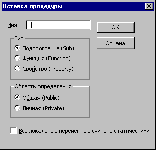 Отображает порядок перехода между объектами и позволяет его изменять. Параметры окна диалога Последовательность Список объектов в порядке расположения их в форме. Переместить вверх При каждом нажатии перемещает выделенный объект на одну позицию в порядке перехода вверх. Переместить вниз При каждом нажатии перемещает выделенный объект на одну позицию в порядке перехода вниз Окно диалога Вставка процедуры