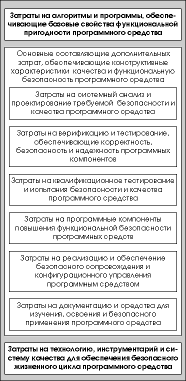 В современных проектах ПС большую или меньшую долю составляют готовые апробированные компоненты из других подобных разработок — прототипы и/или покупные пакеты прикладных программ . Это позволяет значительно ускорять работы и сокращать затраты на создание сложных комплексов программ. Перед разработчиками проекта ПС зачастую возникает дилемма: разрабатывать ли весь комплекс программ (в том числе для обеспечения безопасности) полностью из новых компонентов или использовать, адаптировать и приспосабливать готовые компоненты (какие и в каком количестве). В результате при первичном экономическом анализе затрат на создание ПС с требуемыми характеристиками безопасности целесообразно рассматривать два альтернативных варианта определения затрат на разработку: