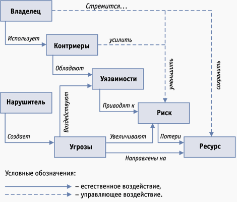 Для построения сбалансированной системы информационной безопасности предполагается первоначально провести анализ рисков в области информационной безопасности. Затем определить оптимальный уровень риска для организации на основе заданного критерия. Систему информационной безопасности (контрмеры) предстоит построить таким образом, чтобы достичь заданного уровня риска. Предлагаемая методика проведения аналитических работ позволяет полностью проанализировать и документально оформить требования, связанные с обеспечением информационной безопасности, избежать расходов на излишние меры безопасности, возможные при субъективной оценке рисков, оказать помощь в планировании и осуществлении защиты на всех стадиях жизненного цикла информационных систем, обеспечить проведение работ в сжатые сроки, представить обоснование для выбора мер противодействия, оценить эффективность контрмер, сравнить различные варианты контрмер. В ходе работ должны быть установлены границы исследования. Для этого необходимо выделить ресурсы информационной системы, для которых в дальнейшем будут получены оценки рисков. При этом предстоит разделить рассматриваемые ресурсы и внешние элементы, с которыми осуществляется взаимодействие. Ресурсами могут быть средства вычислительной техники, программное обеспечение, данные, а также в соответствии со ст. 2 Федерального закона “Об информации, информатизации и защите информации” – информационные ресурсы – отдельные документы и отдельные массивы документов, документы и массивы документов в информационных системах (библиотеках, архивах, фондах, банках данных, других информационных системах). Примерами внешних элементов являются сети связи (абз. 4 ст. 2 Федерального закона “О связи”), внешние сервисы и т.п. При построении модели будут учитываться взаимосвязи между ресурсами. Например, выход из строя какого-либо оборудования может привести к потере данных или выходу из строя другого критически важного элемента системы. Подобные взаимосвязи определяют основу построения модели организации с точки зрения ИБ. Эта модель, в соответствии с предлагаемой методикой, строится следующим образом: для выделенных ресурсов определяется их ценность, как с точки зрения ассоциированных с ними возможных финансовых потерь, так и с точки зрения ущерба репутации организации, дезорганизации ее деятельности, нематериального ущерба от разглашения конфиденциальной информации и т.д. Затем описываются взаимосвязи ресурсов, определяются угрозы безопасности и оцениваются вероятности их реализации. На основе построенной модели можно обоснованно выбрать систему контрмер, снижающих риски до допустимых уровней и обладающих наибольшей ценовой эффективностью. Частью системы контрмер будут рекомендации по проведению регулярных проверок эффективности системы защиты. Обеспечение повышенных требований к ИБ предполагает соответствующие мероприятия на всех этапах жизненного цикла информационных технологий. Планирование этих мероприятий производится по завершении этапа анализа рисков и выбора контрмер. Обязательной составной частью этих планов является периодическая проверка соответствия существующего режима ИБ политике безопасности, сертификация информационной системы (технологии) на соответствие требовани