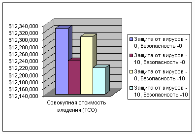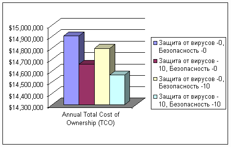 Рис. 2. Пример расчета ТСО. Таким образом, применение методики ТСО для обоснования инвестиций в проекты обеспечения информационной безопасности на предприятии вполне обосновано и имеет право на существование. При этом выбор конкретной методики оценки затрат на ИБ находится в сфере ответственности руководителей соответствующих служб и отделов защиты информации.