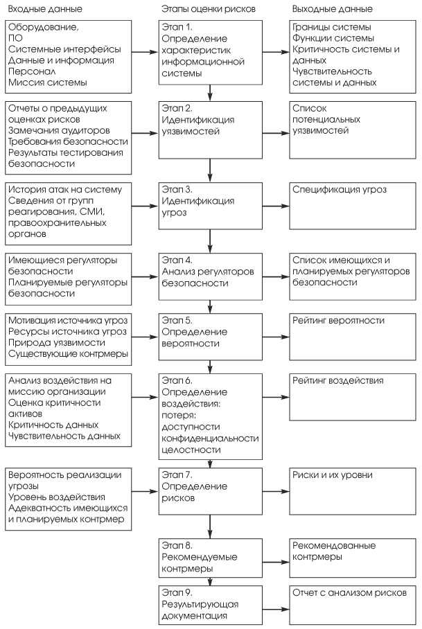 Управление рисками: обзор употребительных подходовИнформационный бюллетень JET INFOОбзор подготовлен по материалам учебного курса "Основы информационной безопасности" доктора физ.-мат. наук, заведующего сектором в отделе информационной безопасности НИИ системных исследований РАН В.А. Галатенко Детальное рассмотрение процесса оценки рисковПроцесс оценки рисков можно подразделить на девять основных этапов: