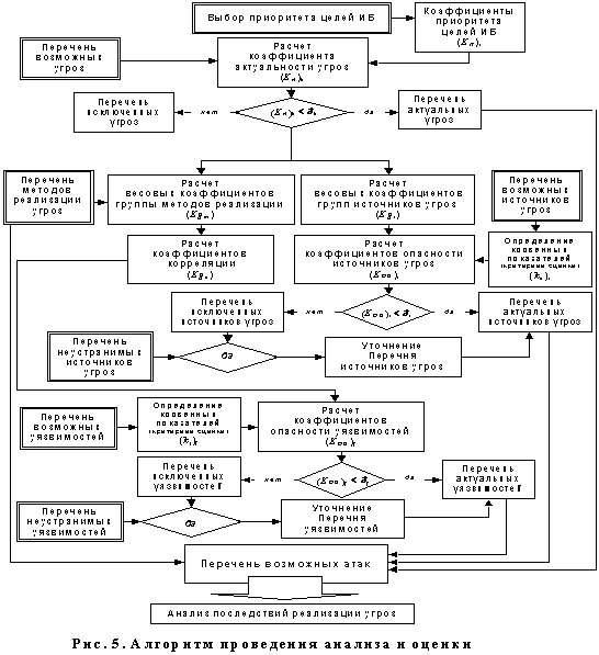 Сам подход к анализу и оценке состояния безопасности информации основывается на вычислении весовых коэффициентов опасности для источников угроз и уязвимостей, сравнения этих коэффициентов с заранее заданным критерием и последовательном сокращении (исключении) полного перечня возможных источников угроз и уязвимостей до минимально актуального для конкретного объекта.