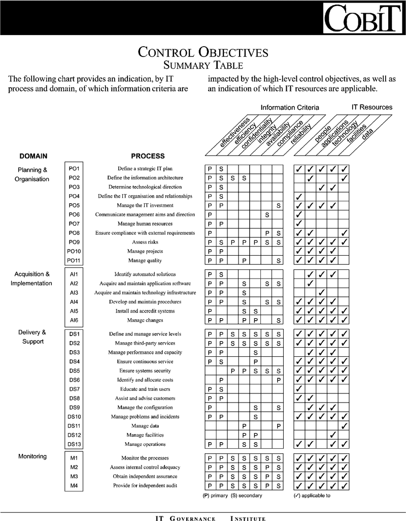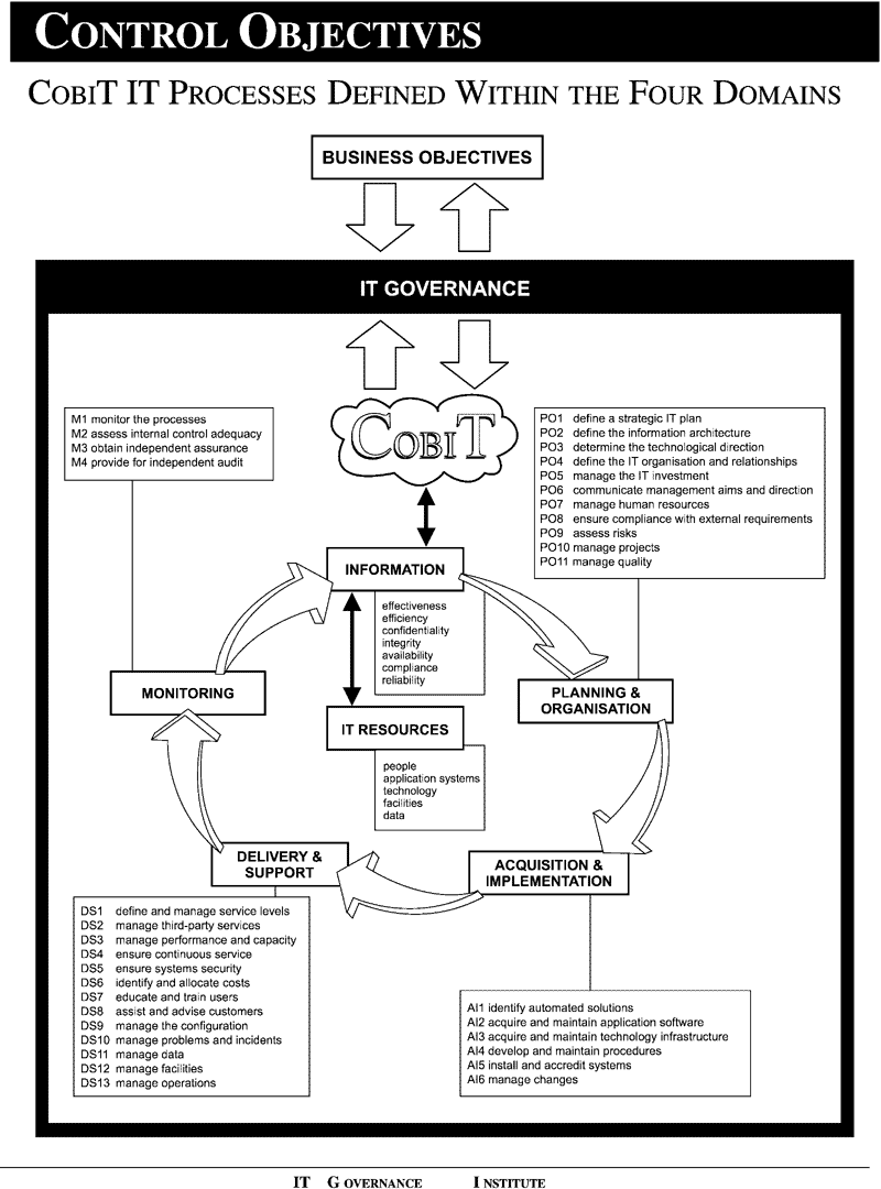 Существенно, что вопросы защиты приведенных информационных активов компании рассматриваются по определенному сценарию: общее описание информационного актива компании - возможные угрозы и уязвимости безопасности -возможные меры и средства контроля и защиты. С версиями этого стандарта на немецком и английском языках можно познакомиться подробнее на Web-сервере BSI (www.bci.de). Стандарт COBIT 3rd Edition К настоящему времени аудиторскими компаниями образованы различные государственные и негосударственные ассоциации, объединяющие профессионалов в области аудита информационных систем, которые занимаются созданием и сопровождением, как правило, закрытых, тщательно охраняемых от посторонних глаз стандартов аудиторской деятельности в области информационных технологий (см. таблицу 2) . Таблица 2. Сравнение некоторых стандартов аудита Ассоциация ISACA, в отличие от других, занимается открытым аудитом информационных систем. Она основана в 1969 году и в настоящее время объединяет более 23000 членов из более чем 100 стран, в том числе и России. Ассоциация ISACA координирует деятельность более чем 26000 аудиторов информационных систем (CICA — Certified Information System Auditor), имеет свою систему стандартов в этой области, ведет исследовательские работы, занимается подготовкой кадров, проводит конференции. Ассоциация ISACA под аудитом информационной безопасности в информационной системе понимает процесс сбора сведений, позволяющих установить, обеспечиваются ли безопасность ресурсов компании, необходимые параметры целостности и доступности данных, достигаются ли цели предприятии в части эффективности информационных технологий. По заявлениям руководящих органов ISACA основная цель ассоциации – исследование, разработка, публикация и продвижение стандартизованного набора документов по управлению информационной технологией для ежедневного использования администраторами и аудиторами информационных систем. В интересах профессиональных аудиторов, руководителей информационных систем, администраторов и всех заинтересованных лиц ассоциация развивает свою концепцию управления информационными технологиями в соответствии с требованиями информационной безопасности. На основе этой концепции описываются элементы информационной технологии, даются рекомендации по компании управления и обеспечению режима информационной безопасности. Концепция изложена в документе под названием COBIT 3rd Edition (Control Objectives for Information and related Technology), который состоит из четырех частей. Часть № 1: Краткое описание концепции (Executive Summary). Часть № 2: Определения и основные понятия (Framework). Помимо требований и основных понятий в этой части сформулированы требования к ним. Часть № 3: Спецификации управляющих процессов и возможный инструментарий (Control Objectives). Часть № 4: Рекомендации по выполнению аудита компьютерных информационных систем (Audit Guidelines). Третья часть этого документа в некотором смысле аналогична международному стандарту ВS ISO/IEC 7799:2000 (BS 7799-1:2000). Примерно также подробно приведены практические рекомендации по управлению информационной безопасностью, но модели систем управления в сравниваемых стандартах сильно различаются. Стандарт COBIT (Control Objectives for Information and related Technology - контрольные объекты информационной технологии) – пакет открытых документов, первое издание которого было опубликовано в 1