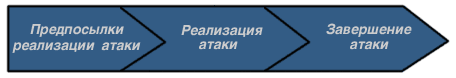 Рассмотрим этапы осуществления атаки (рис.2.). Первый, подготовительный, этап заключается в поиске предпосылок для осуществления той или иной атаки. На этом этапе ищутся уязвимости, использование которых приводит к реализации атаки, т.е. ко второму этапу. На третьем этапе завершается атака, "заметаются" следы и т.д. При этом первый и третий этапы сами по себе могут являться атаками. Например, поиск нарушителем уязвимостей при помощи сканеров безопасности, например, nmap или SATAN считается атакой.