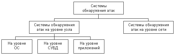 Выделение обнаружения атак на системы управления базами данных (СУБД) в отдельную категорию связано с тем, что современные СУБД уже вышли из разряда обычных приложений и по многим своим характеристикам, в т.ч. и по сложности, приближаются к операционным системам. Таким образом, классификация систем обнаружения атак по уровню реализации выглядит следующим образом (рис.4.):