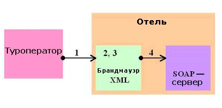 Рис. 1. Процесс пользовательской аутентификации с использованием брандмауэра XML Листинг 1 - это простой SOAP-запрос, который передает в Web-сервис отеля вызов метода GetSpecialDiscountedBookingForPartners. В этом SOAP-запросе отсутствуют какие-либо данные о целостности сообщения или пользовательской аутентификации. Листинг 1 - это начальная точка демонстрации применения спецификации "Цифровая подпись XML". Листинг 1
