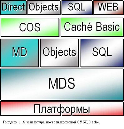Cache' – кроссплатформенная система. Cache' поддерживает следующие операционные системы: всю линейку Windows, Linux, основные реализации Unix и Open VMS. Планируется поддержка новых реализаций Unix. Большое внимание уделяется новой платформе Itanium. Данные в Cache' хранятся под управлением Сервера многомерных данных. В основе Cache' лежит транзакционная многомерная модель данных (TMDM), которая позволяет хранить и представлять данные так, как они чаще всего используются. Сервер многомерных данных снимает многие ограничения, накладываемые реляционными СУБД, которые хранят данные в двумерных таблицах, ведь если реляционная модель состоит из большого количества таблиц, что необходимо при работе со сложными структурами данных, это существенно усложняет и замедляет выполнение сложных транзакций и ведет к хранению излишней информации. Cache' хранит данные в виде многомерных разреженных массивов – глобалей. Уникальная транзакционная многомерная модель данных позволяет избежать проблем, присущих реляционным СУБД, оптимизируя данные на уровне хранения. В отличие от ранних многомерных СУБД, которые были оптимизированы для создания аналитических систем, Cache' ориентирована на системы обработки транзакций (Online Transaction Processing). Сервер многомерных данных Cache' предназначен для обработки транзакций в системах с большими и сверхбольшими БД (сотни гигабайт, терабайты) и большим количеством одновременно работающих пользователей. Сервер многомерных данных Cache' позволяет разработчикам получить великолепную производительность, отказавшись от хранения избыточных данных и таблиц. Реляционная модель не всегда подходит для описания сложных предметных областей. Транзакционная модель данных Cache' позволяет оптимизировать данные на уровне хранения, поддерживать объектную модель и сложные типы данных. Все эти возможности значительно упрощают создание сложных систем.