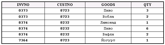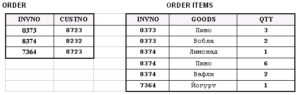 Рис. 1a При втором подходе проектировщик осуществляет операции выборки/доступа к данным оперируя непосредственно над бизнес объектами. Нормализация данных производится динамически, в оперативной памяти, тогда, когда это действительно необходимо: например, когда производится группировка счетов-фактур по типу товара. Этот подход обеспечивает максимальную эффективность при работе с бизнес объектами, но требует от СУБД поддержки сложных структур - таких как вложенные таблицы или массивы, а также возможности динамической нормализации этих структур. Таблицы в такой системе приобретают некоторую иерархию: выделяются "главные" и "вспомогательные" таблицы.