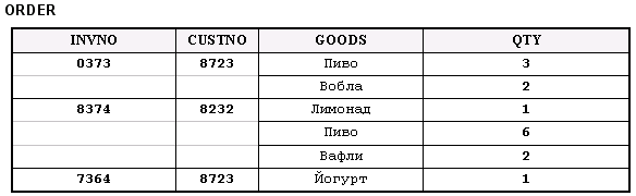 Рис. 2a. Представление данных в 1-й нормальной форме (1NF)