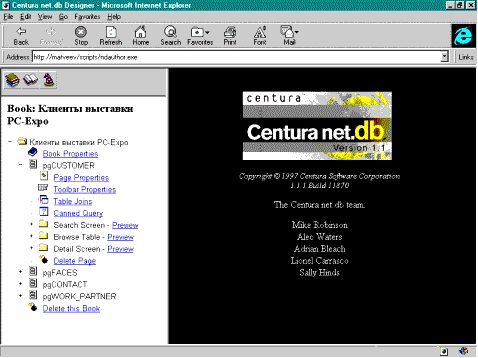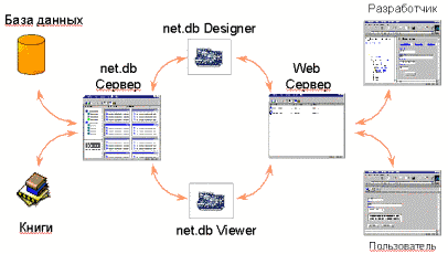 Архитектура Net.db Для организации данных Centura Net.db использует библиотеку, хранящуюся на Web-узле. Библиотека может содержать неограниченное количество книг, а книга состоит из любого, начиная с одной, количества страниц. Net.db в Internet/Intranet работает совместно с Windows NT Web Server с поддержкой CGI, типа Netscape FastTrack или Microsoft Internet Information Server. Для работы не требуется дополнительных компонент, так как разработка и просмотр ведутся через браузер типа Netscape Navigator или Microsoft Internet Explorer.